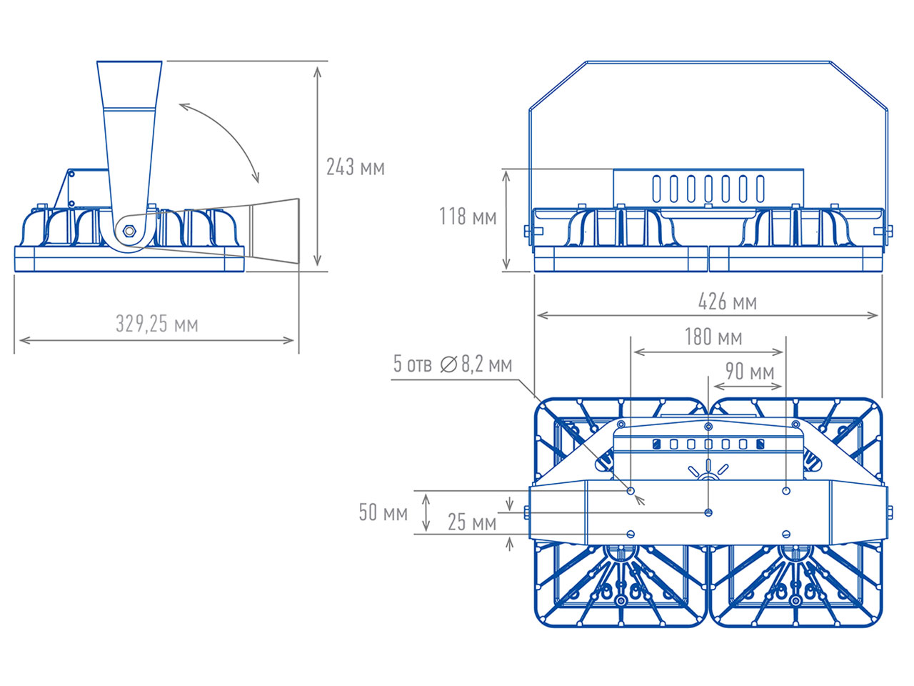 Как купить у нас: Заказ и оплатаКак получить: Способы доставкиСветМощность, Вт 251.7Световой поток светодиодов, Лм 48816Световой поток светильника, Лм 43934Световая эффективность, Лм/Вт 174.5Кривая силы света (КСС) Д (120°)Цветовая температура, К 5000Цвет свечения Нейтральный белый (5000К)Индекс цветопередачи CRI (Ra) 70Коэффициент пульсаций светового потока, % 5Марка светодиода OSRAM DURIS S8Ресурс светодиодов, Ч до 100 000Количество светодиодов, Шт 76Время включения светильника, с 0.5Диммирование НетИзделиеМатериал корпуса Литьевой алюминийРассеиватель Противоударный поликарбонатМатериал монтажных плат АлюминийКронштейн в комплекте ДаСпособ крепления Поворотная скобаДиапазон регулировки угла наклона 0° / -360°Степень защиты, IP 67Температура эксплуатации, °С от -40° до +45°Антивандальный ДаСтепень защиты оболочки (корпус) IK10Степень защиты оболочки (рассеиватель) IK10Класс защиты от поражения электрическим током 1Вид климатического исполнения УХЛ1Индекс энергоэффективности (EEI) A++Быстрая замена драйвера ДаНаименование по ГОСТ 17677-82 ДБП-247,3W IP67 42799Лм 5000К КСС D120Страна происхождения РоссияГарантия, лет 5Срок службы, не менее, лет 12ПитаниеПроизводитель источника питания MEAN WELLМодель источника питания MEAN WELL XLG-250-L-AНапряжение питания, В 100-305В AC / 142-431В DCЧастота, Гц 47-63Коэффициент мощности ИП, cos φ ~0,95Степень защиты источника питания, IP 67Термозащита ДаЗащита от 380, В НетЗащита от короткого замыкания ДаЗащита от холостого хода ДаЗащита от перенапряжения по сети >280 В, восстанавливается автоматическиЭлектромагнитная совместимость (радиопомехи) по ГОСТ, IECГальваническая изоляция ДаПробивное напряжение, кВ АС I/P-O/P:3.75 KVACСопротивление изоляции, МОм I/P-O/P, I/P-FG, O/P-FG:100M Ohms / 500VDC / 25℃/ 70% RHГабариты и массаГабариты светильника ДхШхВ, Мм 426х330х118Масса нетто, Кг 6Светильников в коробке, Шт 1Габариты коробки, ДхШхВ, Мм 430x365x118Объем коробки, м3 0.019Масса брутто, Кг 6.4- TL-PROM APS – промышленный светильник в литом алюминиевом корпусе «APS»