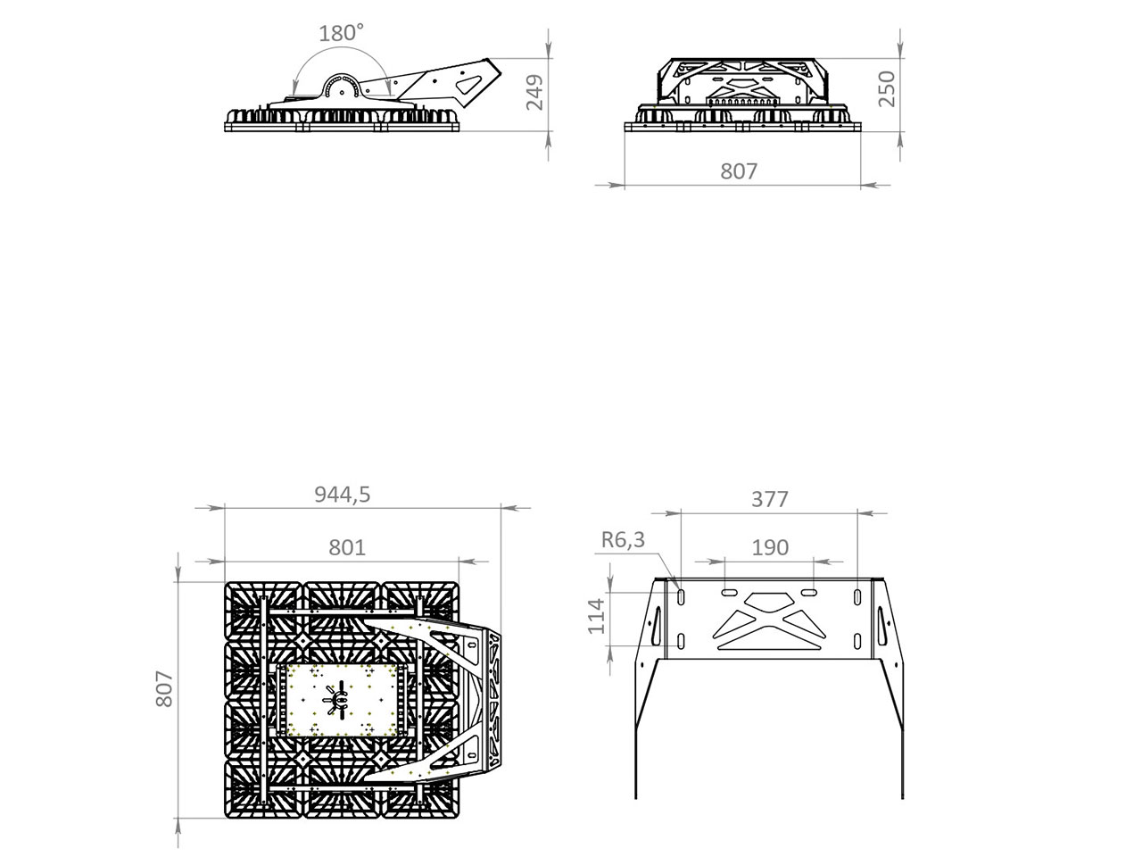 Как купить у нас: Заказ и оплатаКак получить: Способы доставкиСветМощность, Вт 1510.3Световой поток светодиодов, Лм 292894Световой поток светильника, Лм 263605Световая эффективность, Лм/Вт 174.5Кривая силы света (КСС) Д (120°)Цветовая температура, К 5000Цвет свечения Нейтральный белый (5000К)Индекс цветопередачи CRI (Ra) 70Коэффициент пульсаций светового потока, % <1Марка светодиода OSRAM DURIS S8Ресурс светодиодов, Ч до 300 000Количество светодиодов, Шт 456Время включения светильника, с 0.5Диммирование НетИзделиеМатериал корпуса Литьевой алюминийРассеиватель Противоударный поликарбонатМатериал монтажных плат АлюминийКронштейн в комплекте ДаСпособ крепления Поворотная скобаДиапазон регулировки угла наклона 0° / -180°Вибрационные нагрузки, не более 0,5-35 Гц, 5м/с2, 30 минСтепень защиты, IP 67Температура эксплуатации, °С от -40° до +45°Антивандальный ДаСтепень защиты оболочки (корпус) IK10Степень защиты оболочки (рассеиватель) IK10Класс защиты от поражения электрическим током 1Вид климатического исполнения УХЛ1Индекс энергоэффективности (EEI) A++Класс опасности утилизации отходов 4Быстрая замена драйвера ДаСтрана происхождения РоссияГарантия, лет 5Срок службы, не менее, лет 12ПитаниеНапряжение питания, В 100-305В AC / 142-431В DCЧастота, Гц 47-63Коэффициент мощности ИП, cos φ ~0,95Степень защиты источника питания, IP 67Грозозащита ДаТермозащита ДаЗащита от 380, В НетЗащита от короткого замыкания ДаЗащита от холостого хода ДаЭлектромагнитная совместимость (радиопомехи) по ГОСТ, IECГальваническая изоляция ДаПробивное напряжение, кВ АС I/P-O/P:3.75 KVACСопротивление изоляции, МОм I/P-O/P, I/P-FG, O/P-FG:100M Ohms / 500VDC / 25℃/ 70% RHГабариты и массаГабариты светильника ДхШхВ, Мм 947х806х227Масса нетто, Кг 33.5Светильников в коробке, Шт 1Масса брутто, Кг 34- TL-PROM APS – промышленный прожектор в литом алюминиевом корпусе «APS»