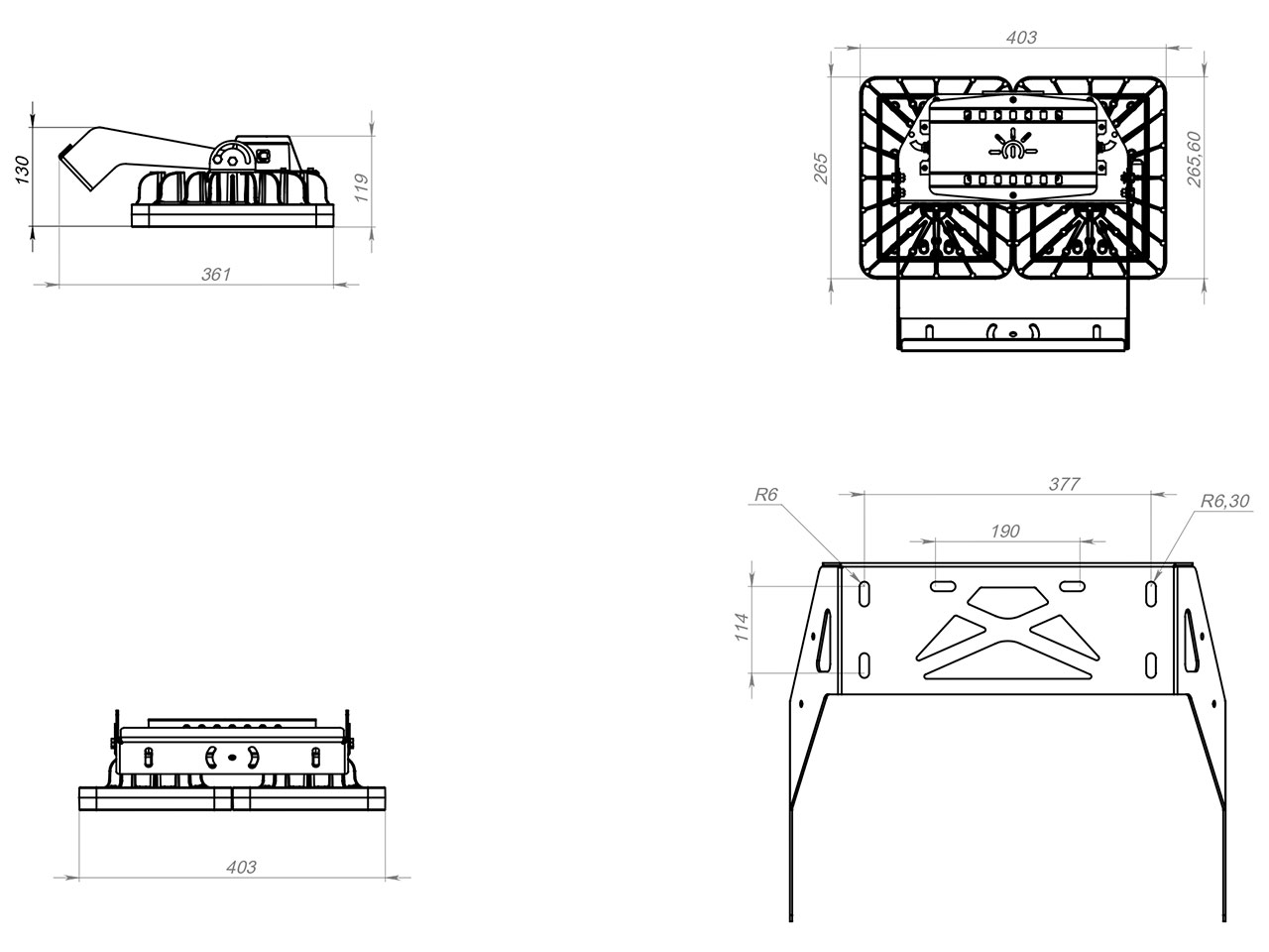 Как купить у нас: Заказ и оплатаКак получить: Способы доставкиСветМощность, Вт 251.7Световой поток светодиодов, Лм 48816Световой поток светильника, Лм 43934Световая эффективность, Лм/Вт 174.5Кривая силы света (КСС) Д (120°)Цветовая температура, К 5000Цвет свечения Нейтральный белый (5000К)Индекс цветопередачи CRI (Ra) 70Коэффициент пульсаций светового потока, % <1Марка светодиода OSRAM DURIS S8Ресурс светодиодов, Ч до 100 000Количество светодиодов, Шт 76Время включения светильника, с 0.5Диммирование НетИзделиеМатериал корпуса Литьевой алюминийРассеиватель Противоударный поликарбонатМатериал монтажных плат АлюминийКронштейн в комплекте ДаСпособ крепления Поворотная скобаДиапазон регулировки угла наклона 0° / -360°Вибрационные нагрузки, не более 0,5-35 Гц, 5м/с2, 30 минСтепень защиты, IP 67Температура эксплуатации, °С от -40° до +45°Антивандальный ДаСтепень защиты оболочки (корпус) IK10Степень защиты оболочки (рассеиватель) IK10Класс защиты от поражения электрическим током 1Вид климатического исполнения УХЛ1Индекс энергоэффективности (EEI) A++Класс опасности утилизации отходов 4Быстрая замена драйвера ДаСтрана происхождения РоссияГарантия, лет 5Срок службы, не менее, лет 10ПитаниеНапряжение питания, В 100-305В AC / 142-431В DCЧастота, Гц 47-63Коэффициент мощности ИП, cos φ ~0,95Степень защиты источника питания, IP 67Грозозащита ДаТермозащита ДаЗащита от 380, В НетЗащита от короткого замыкания ДаЗащита от холостого хода ДаЗащита от перенапряжения по сети >280 В, восстанавливается автоматическиЭлектромагнитная совместимость (радиопомехи) по ГОСТ, IECГальваническая изоляция ДаПробивное напряжение, кВ АС I/P-O/P:3.75 KVACСопротивление изоляции, МОм I/P-O/P, I/P-FG, O/P-FG:100M Ohms / 500VDC / 25℃/ 70% RHГабариты и массаГабариты светильника ДхШхВ, Мм 403х266х118Масса нетто, Кг 5.82Светильников в коробке, Шт 1Габариты коробки, ДхШхВ, Мм 430x365x130Объем коробки, м3 0.02Масса брутто, Кг 6.5- TL-PROM APS – промышленный прожектор в литом алюминиевом корпусе «APS»