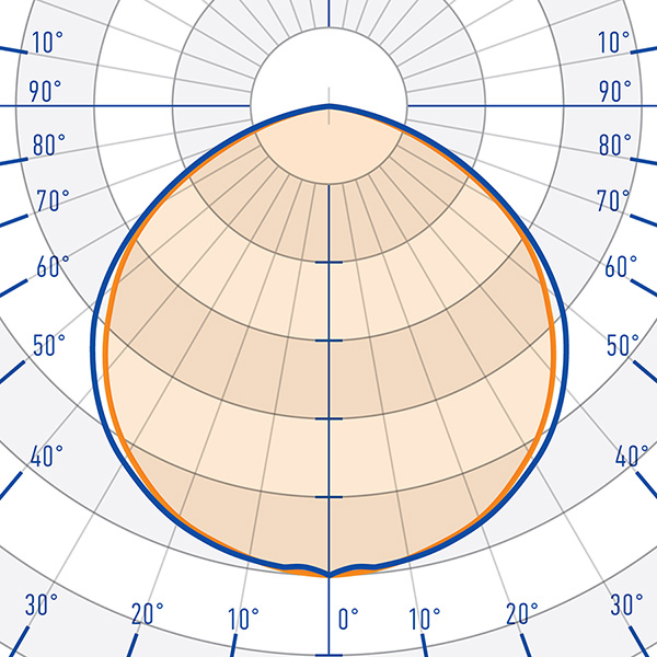 - D120 – прозрачный рассеиватель с рассеянным светом, косинусная диаграмма 120° (без линзы)