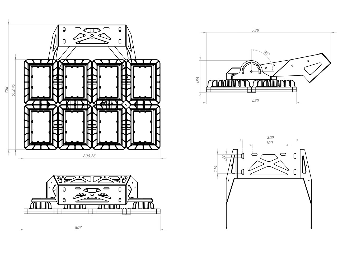 - FL – исполнение с П-образной прожекторной скобой (от англ. flood light – прожектор)
