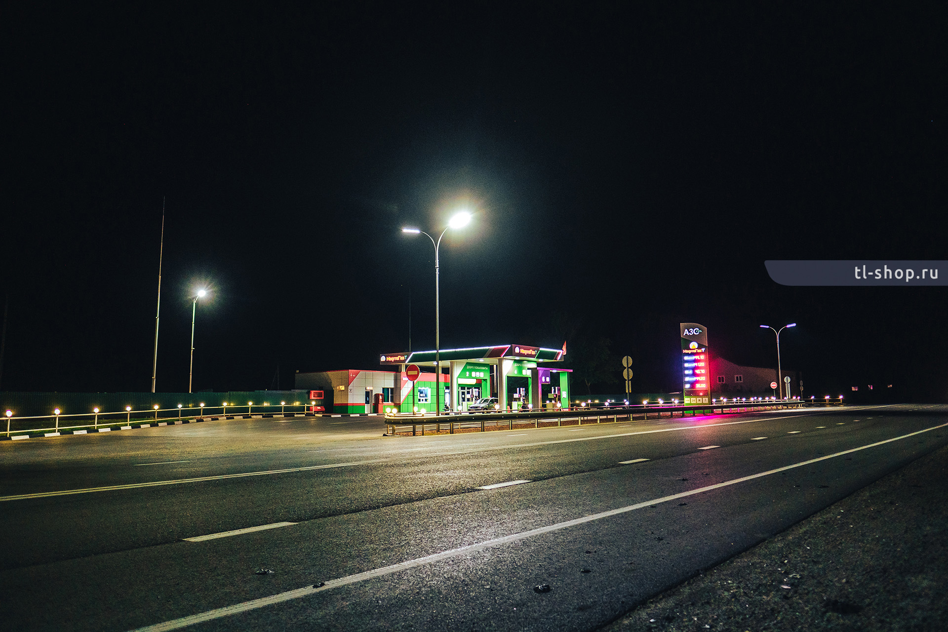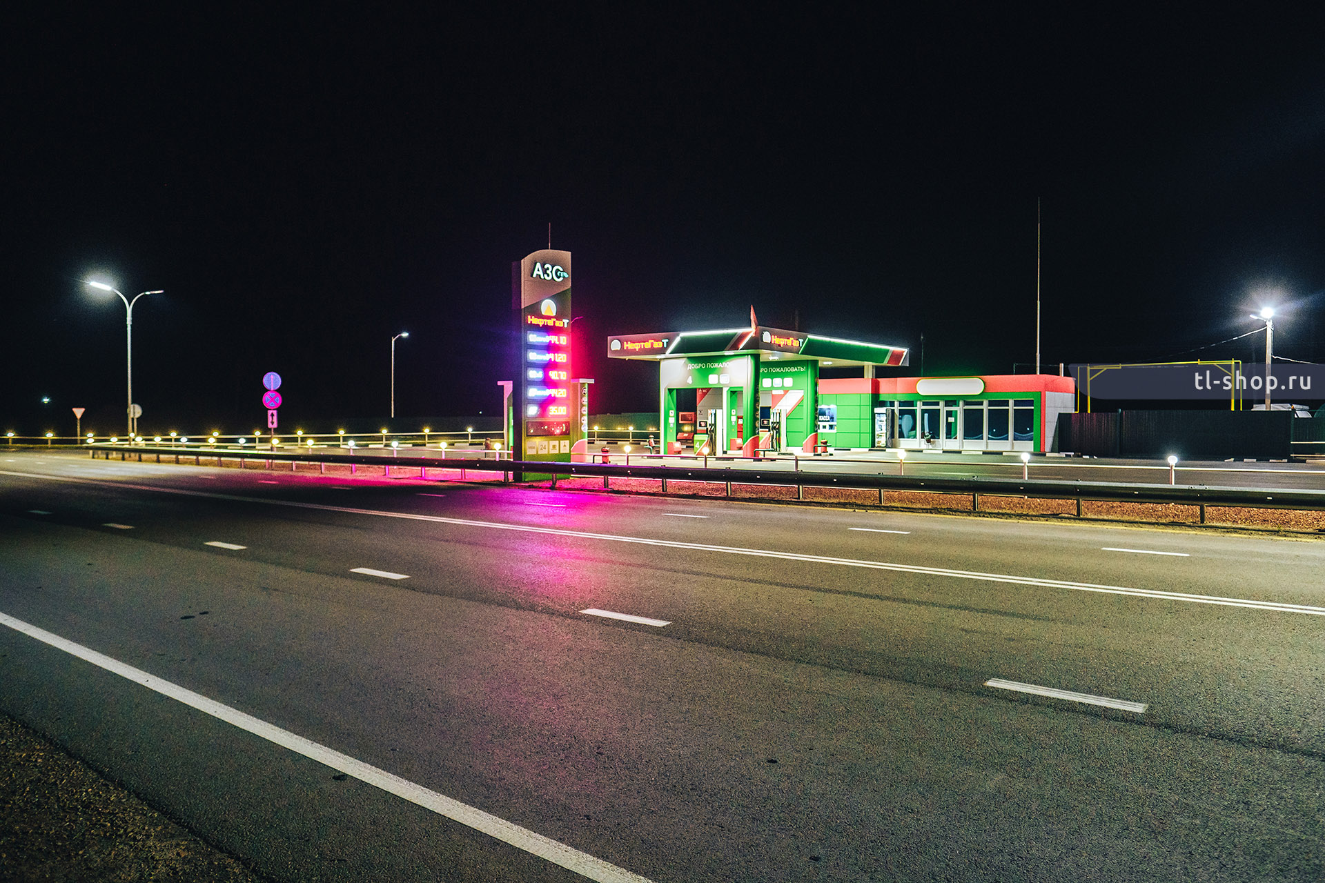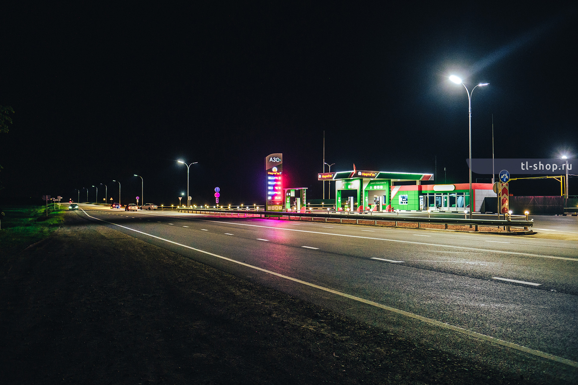 В совокупности светильники потребляет всего 3.5 кВт, ярко освещая всю территорию и привлекая внимание к АЗС. Благодаря сроку службы от 10 лет и снижению расходов на электроэнергию, инвестиция в свет окупится за несколько лет, а дальше будет годами работать в плюс.